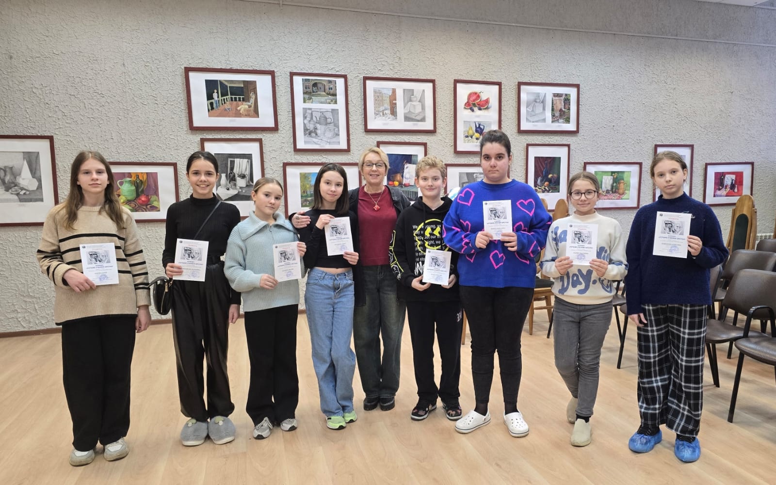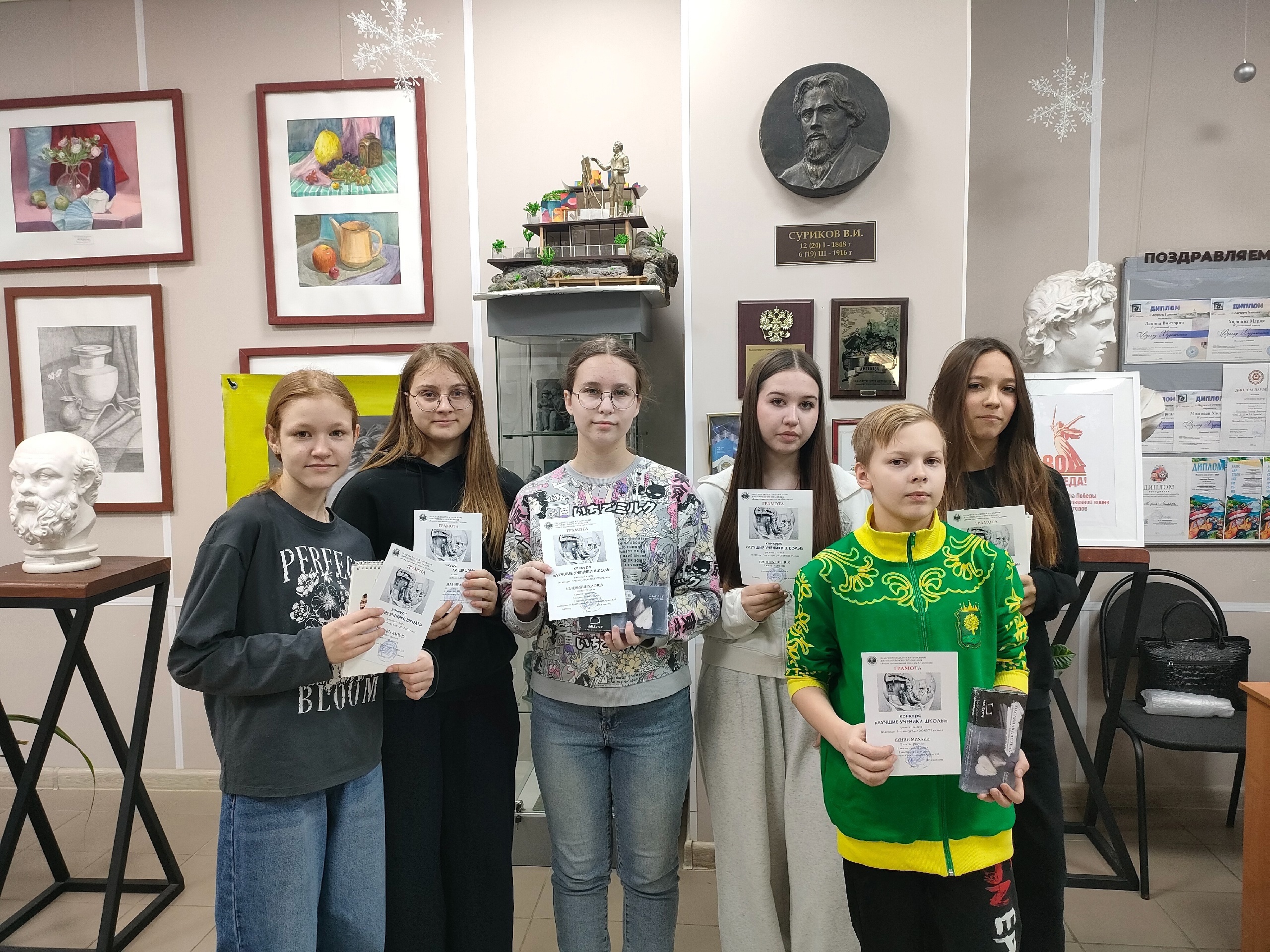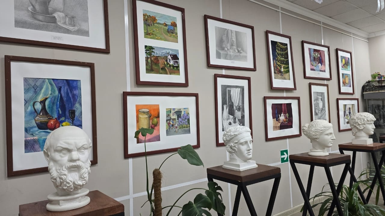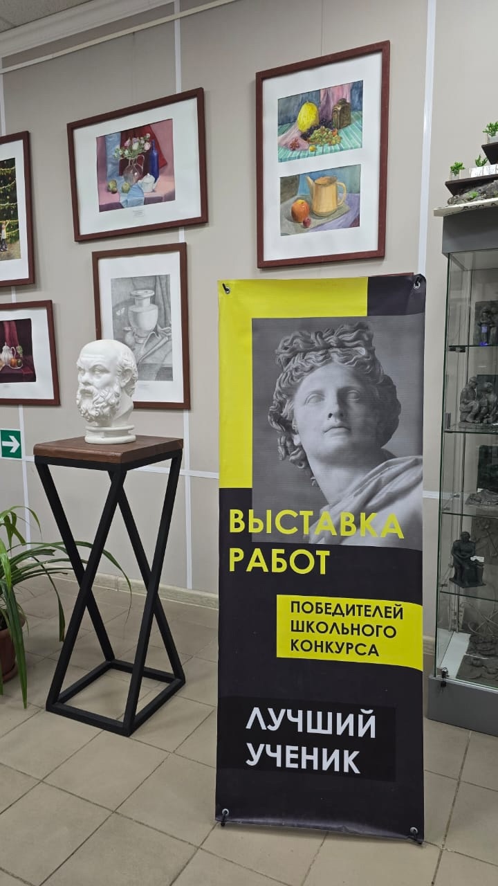 В школе прошло награждение победителей и открытие выставки работ школьного конкурса «Лучший ученик». В экспозиции представлены работы учеников по предпрофессиональной программе с 1 по 5 классы — живопись, графика, скульптура.