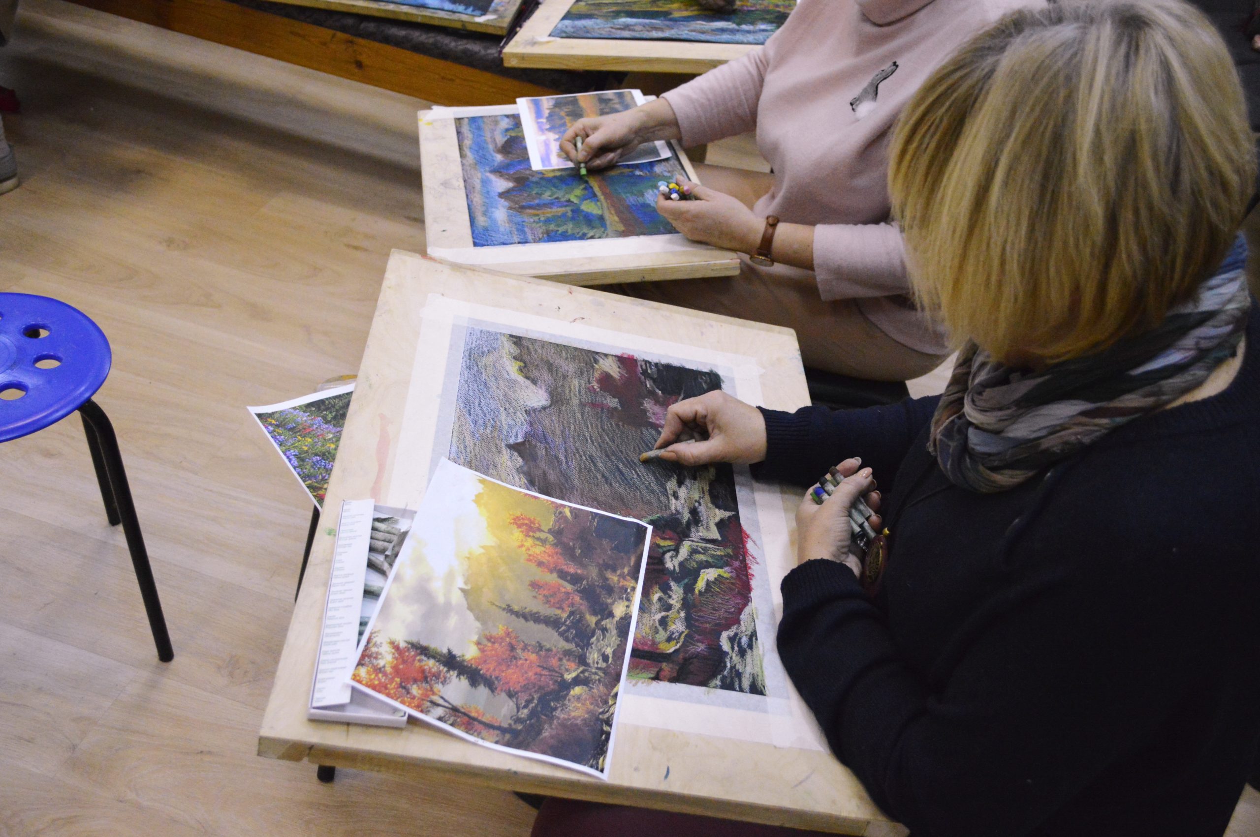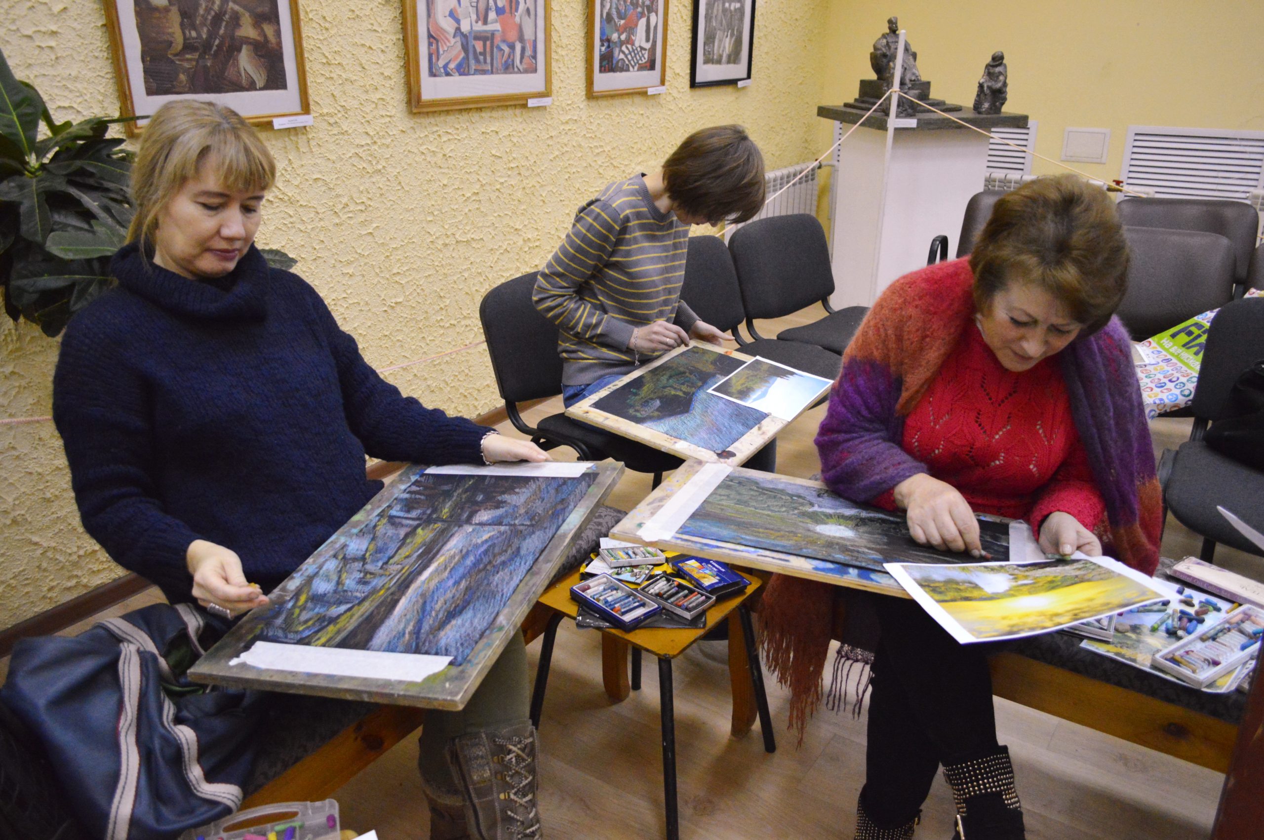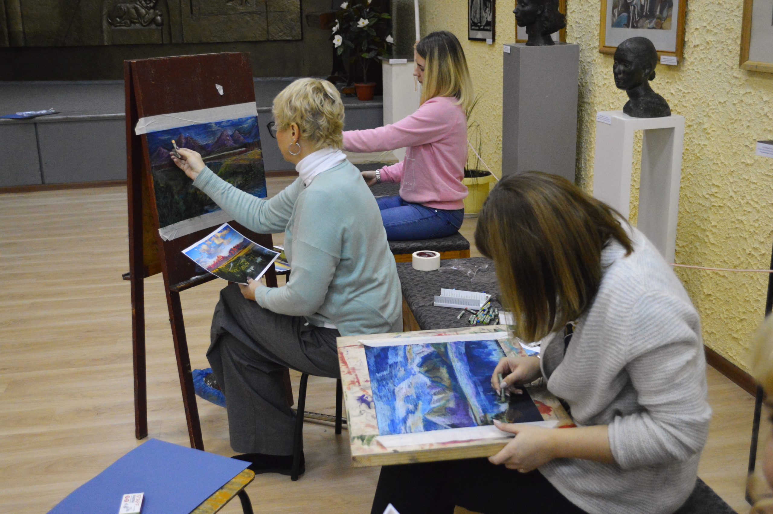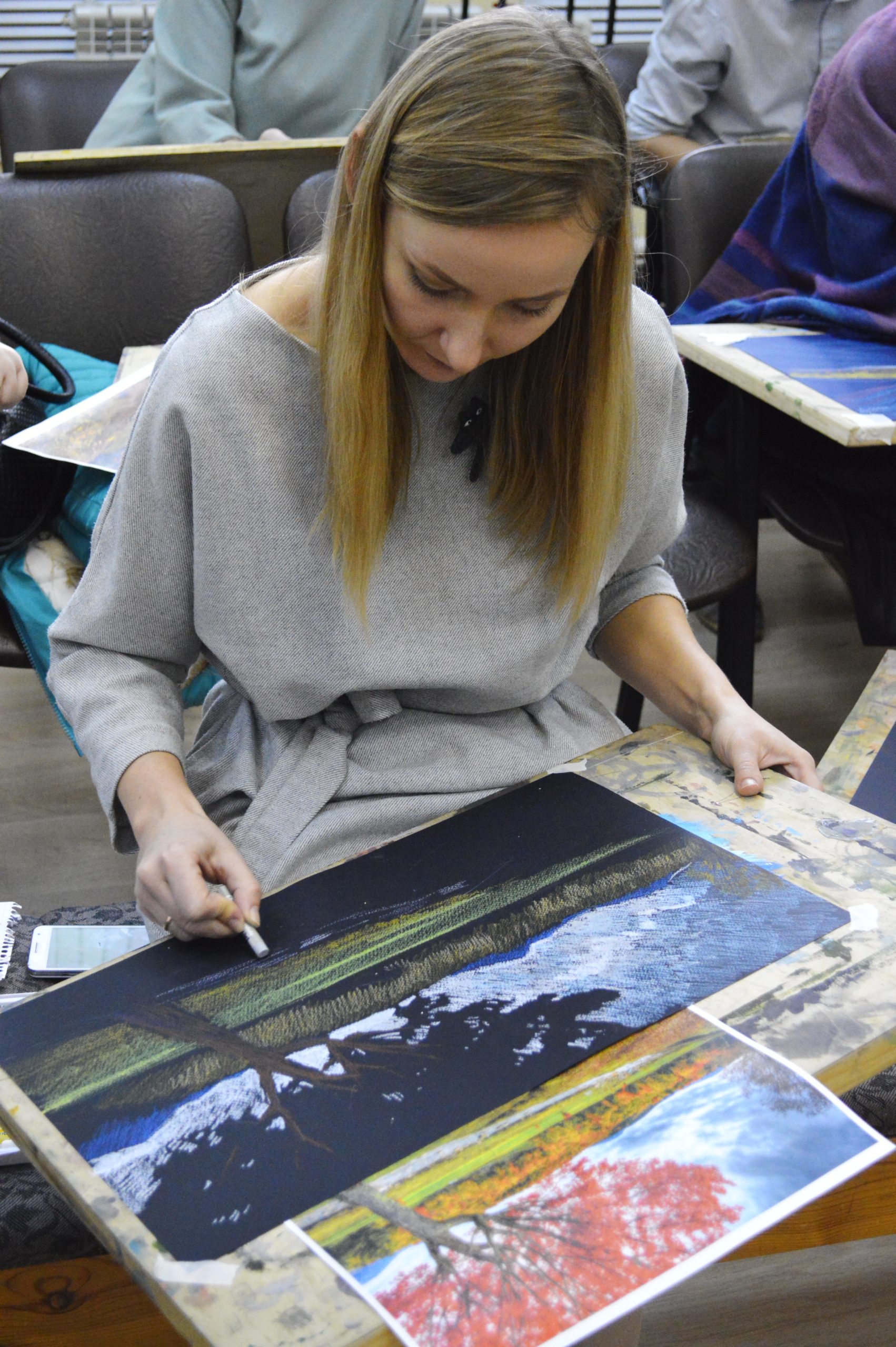 В мастер-классе приняли участие преподаватели из ДХШ №1 им. В.С. Сорокина, ДХШ №2 им. В.И. Сурикова, ДШИ №2, ДШИ №4, ДШИ №6 и ДШИ №12 г. Липецка. Темой мастер-класса были зарисовки пейзажа масляной пастелью по тонированной бумаге. Педагоги успешно попробовали новую для себя технику графики, крайне подходящую для быстрого рисования пейзажа в условиях пленэра.