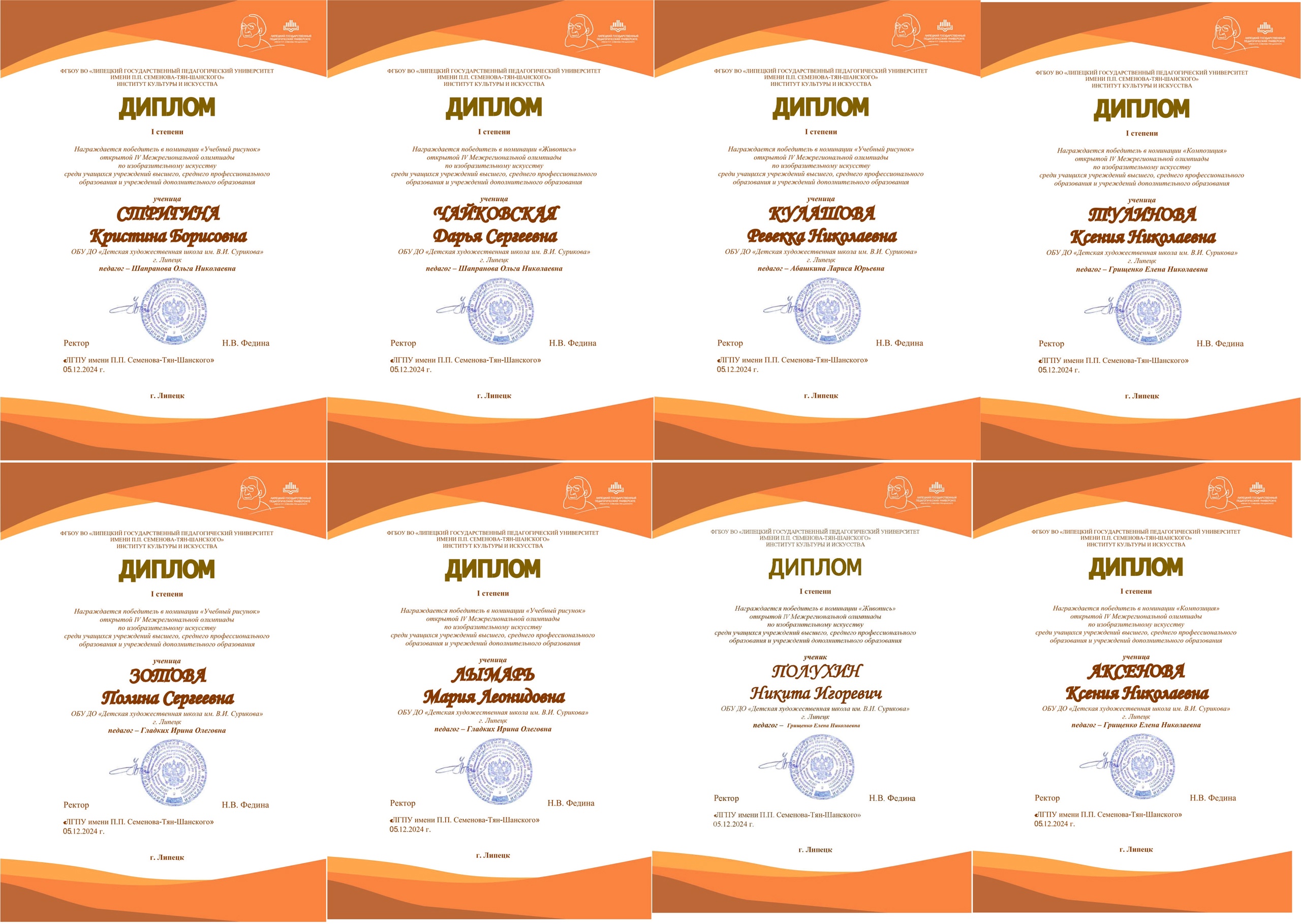 Поздравляем дипломантов открытой IV Межрегиональной олимпиады по изобразительному искусству, проводимой Институтом культуры и искусства «ЛГПУ им. П.П. Семенова-Тян-Шанского».
