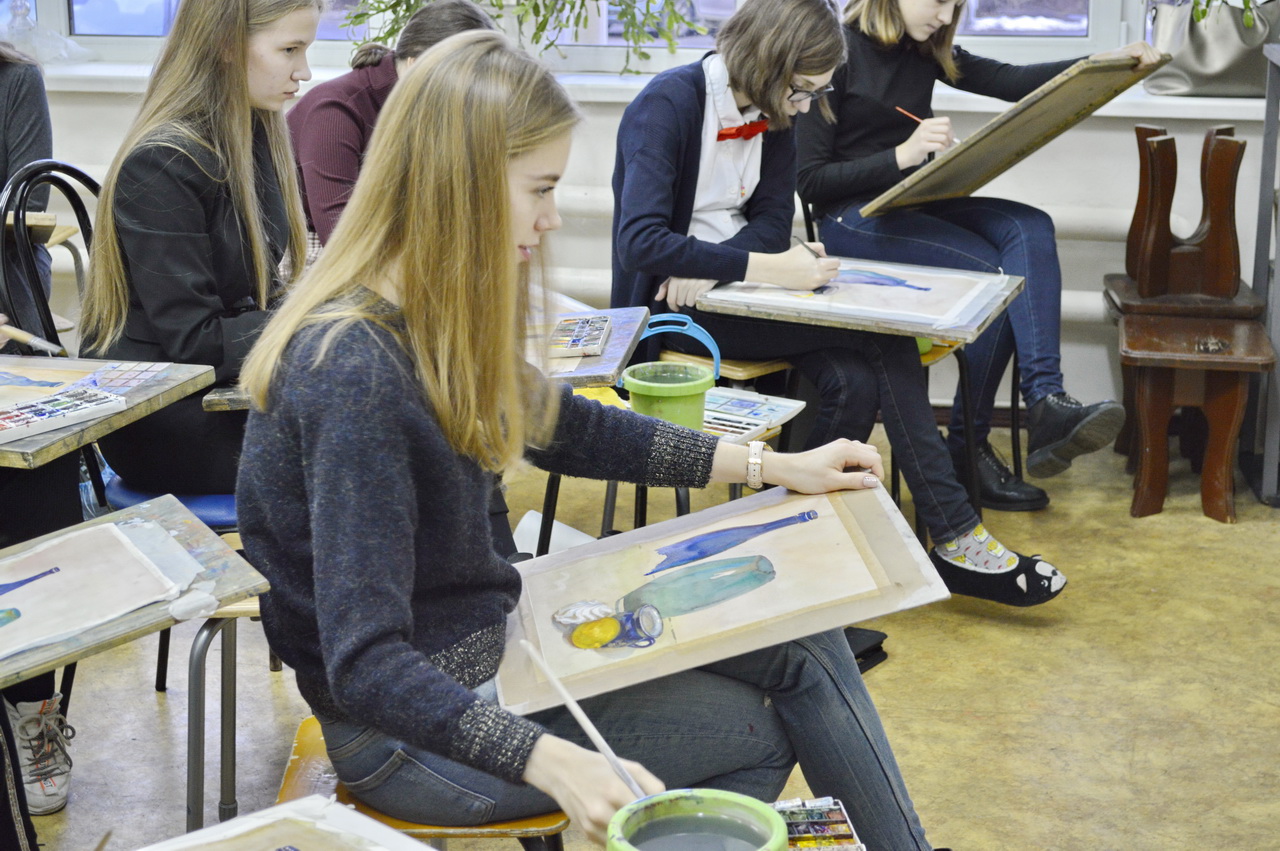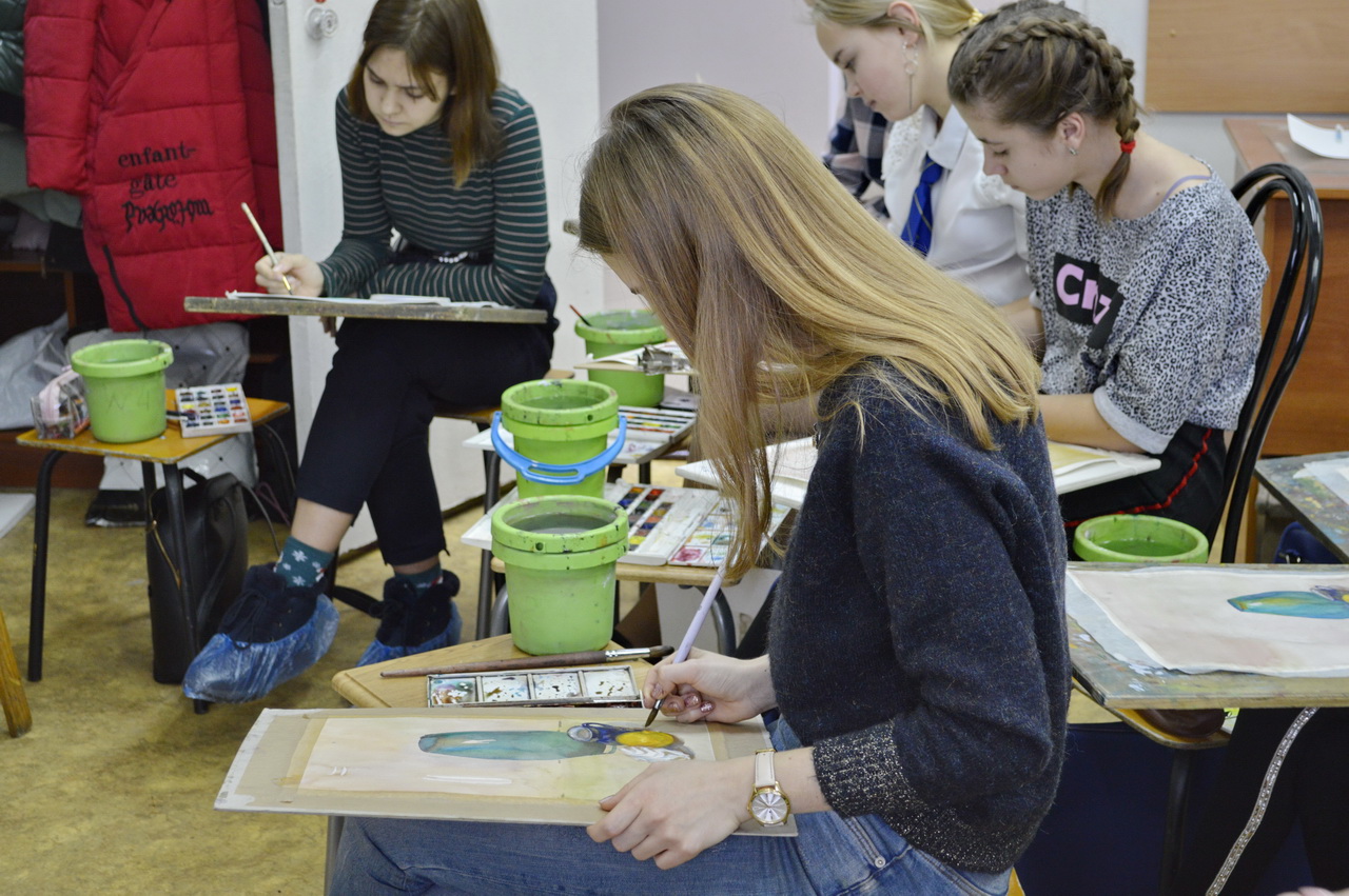 Студентка Академии акварели и изящных искусств С. Андрияки провела мастер-класс по акварельной живописи для учеников 2 класса ДХШ №2 им. В.И. Сурикова