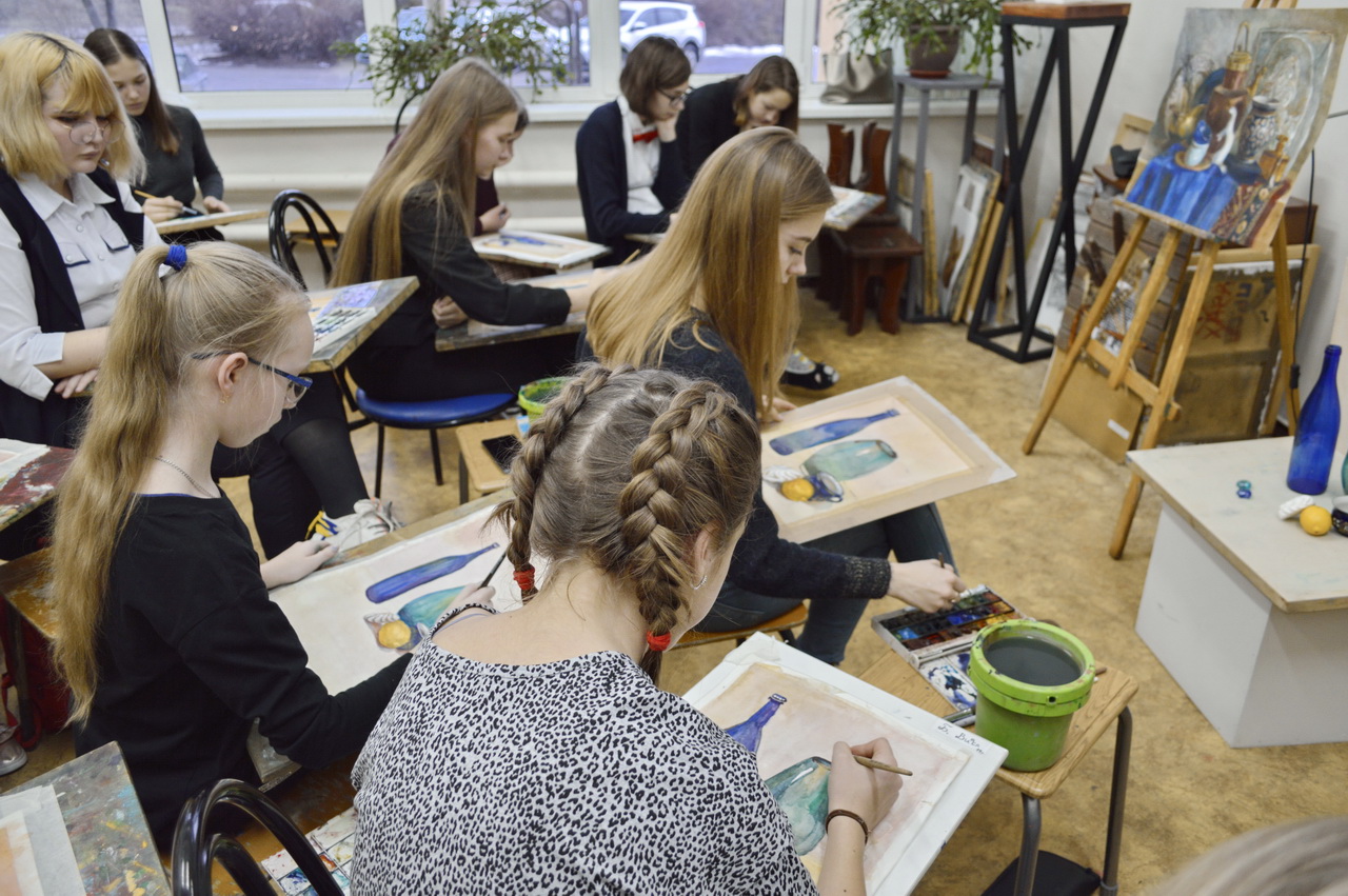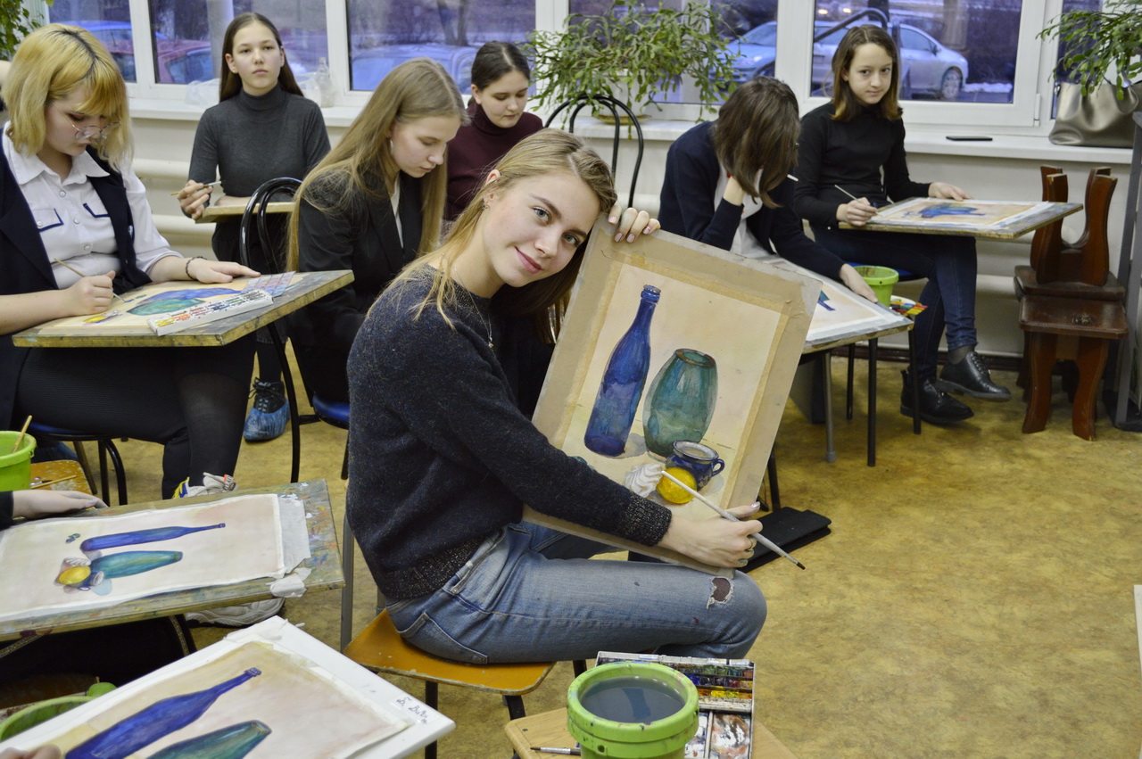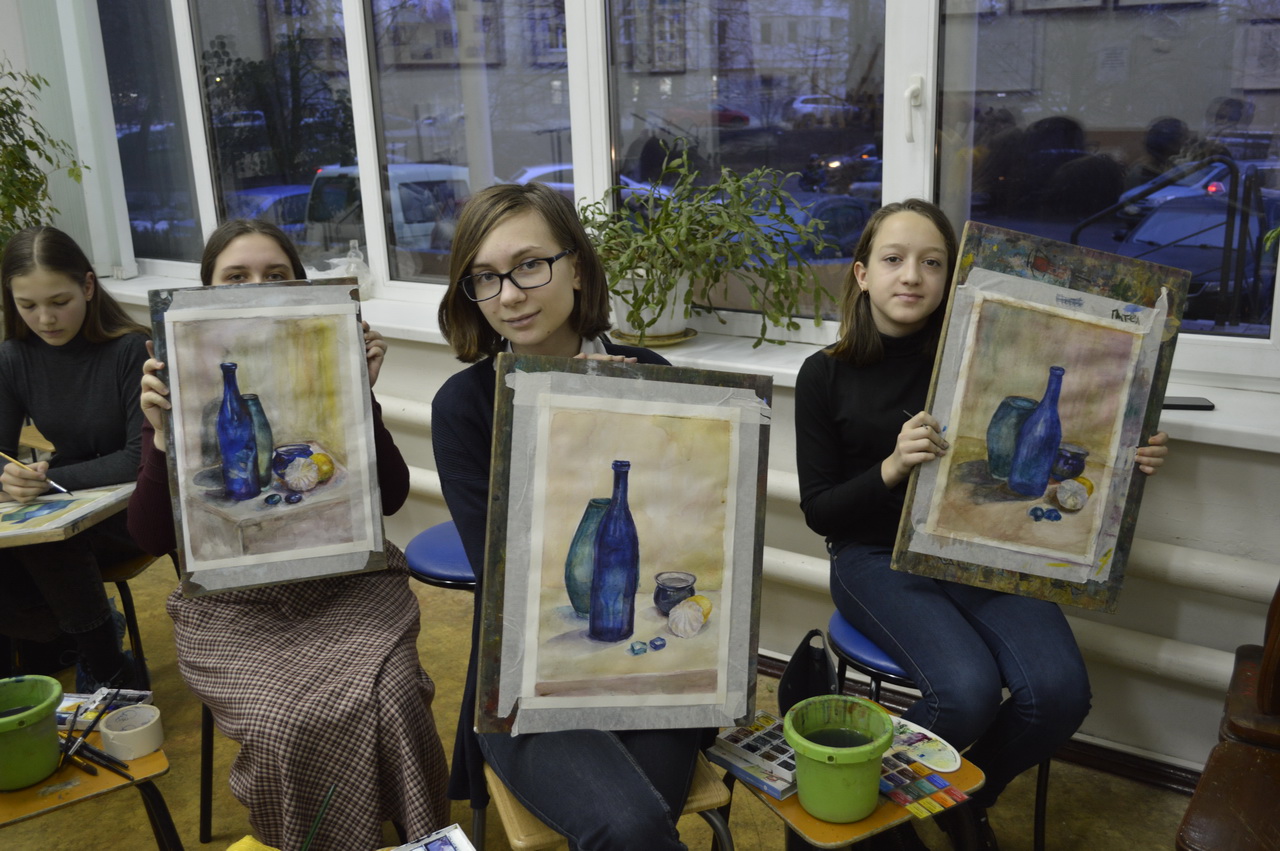 27 и 30 января 2020 г. выпускница нашей школы и студентка 1 курса Академии акварели изящных искусств Сергея Андрияки — Копылова Софья — провела мастер-класс по многослойной акварели для группы №22 Детской художественной школы №2 им. В.И. Сурикова. На мастер-классе ребята рисовали натюрморт со стеклом, фарфоровой чашкой и зефиром, изучая тем самым различные фактуры и методику письма акварелью стеклянных поверхностей.