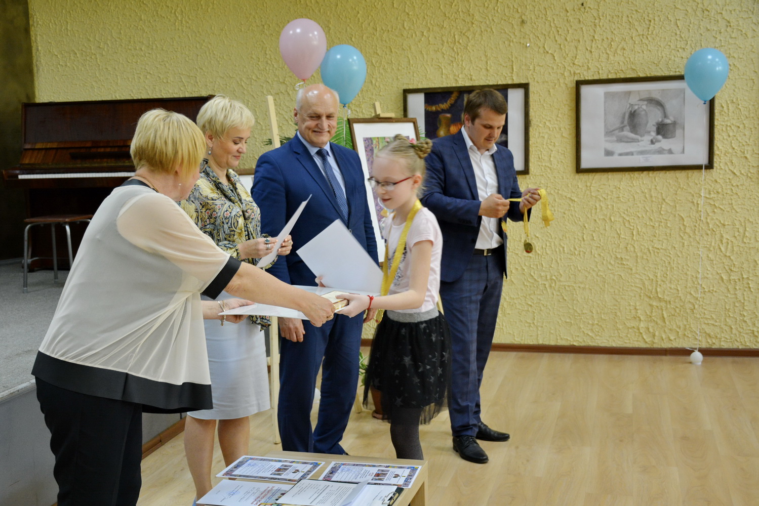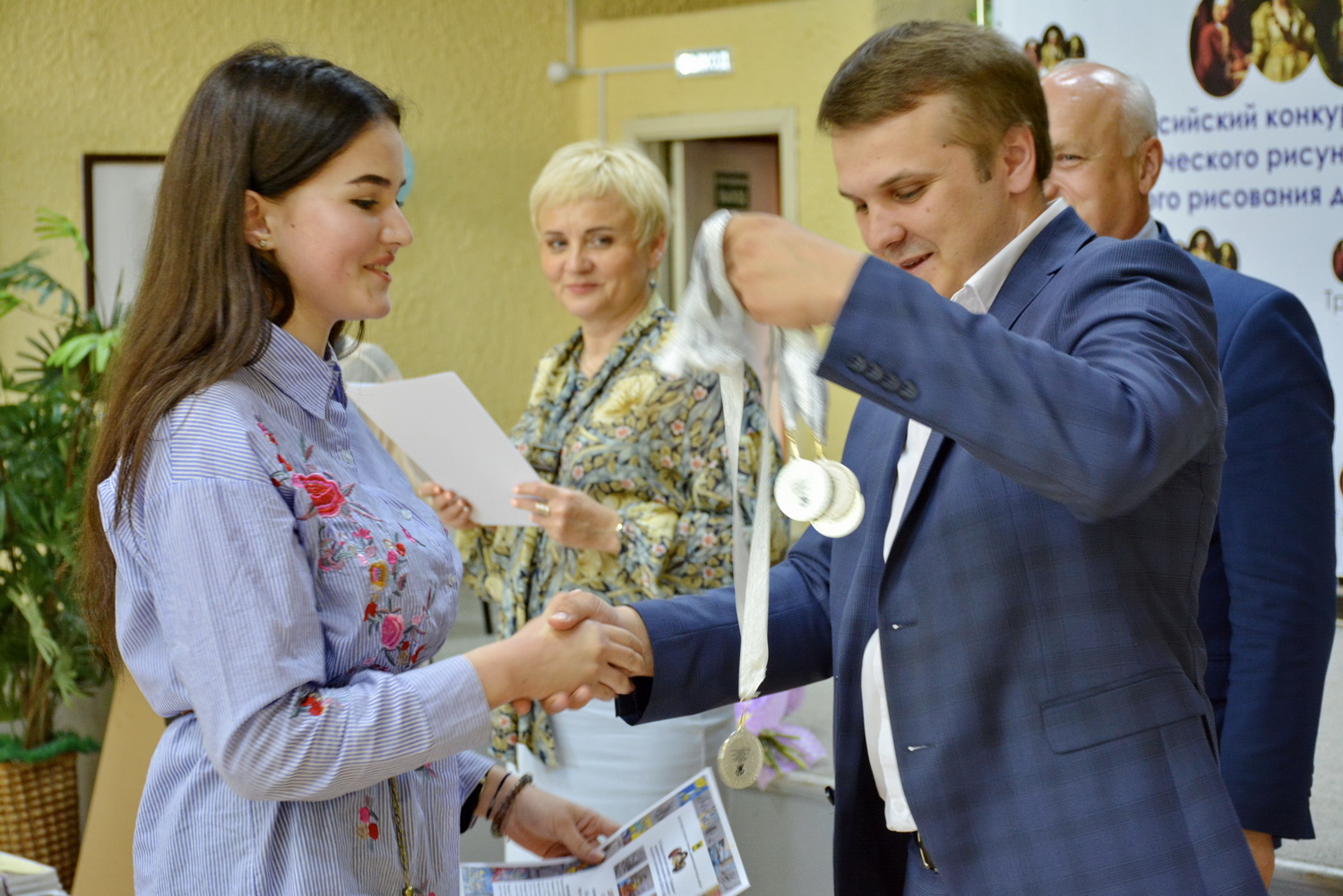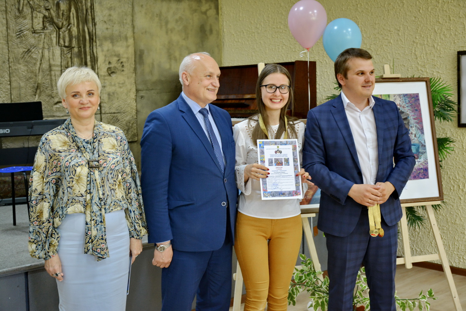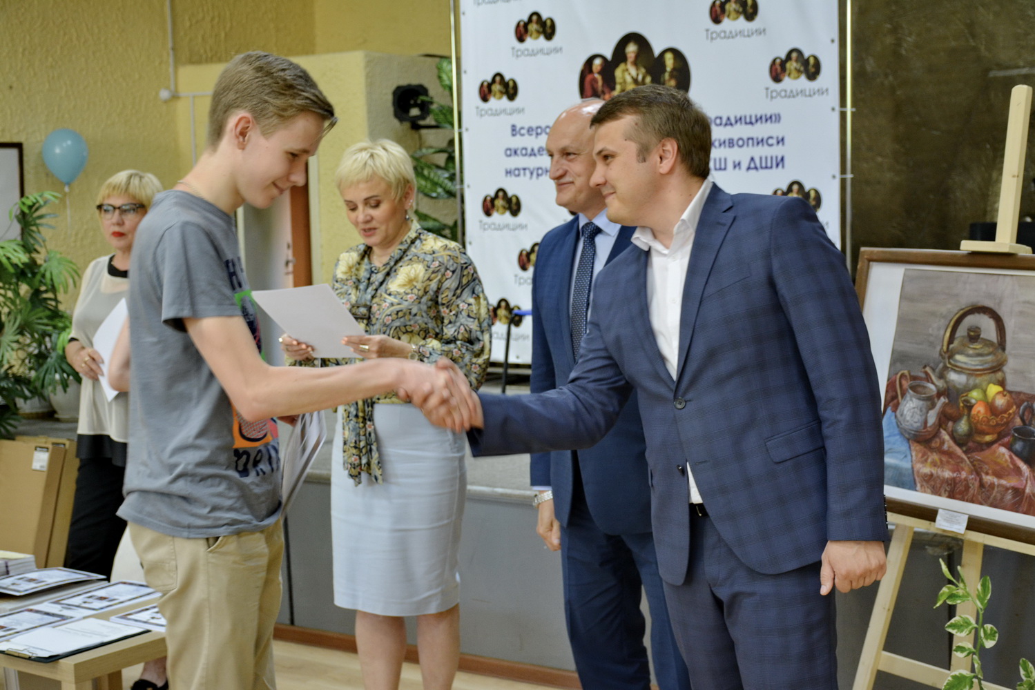 И именно победителей из ДХШ №1 им. В.С. Сорокина, ДХШ №2 им. В.И. Сурикова, ДШИ №11, ДШИ №12 и ДХШ г. Ельца, а также преподавателей, наставников победителей награждали гости праздника: заместитель начальника Управления культуры и туризма Липецкой области — Катрич Федор Николаевич и заместитель председателя Департамента культуры и туризма администрации г. Липецка — Матюхин Константин Николаевич, главный консультант отдела культуры и дополнительного образования — Бахаева Оксана Анатольевна и бессменный член жюри доцент кафедры ИЗО Института культуры и искусства ЛГПУ им. Семенова-Тян-Шанского (г. Липецк), почетный работник высшего профессионального образования — Никитенков Сергей Алексеевич.