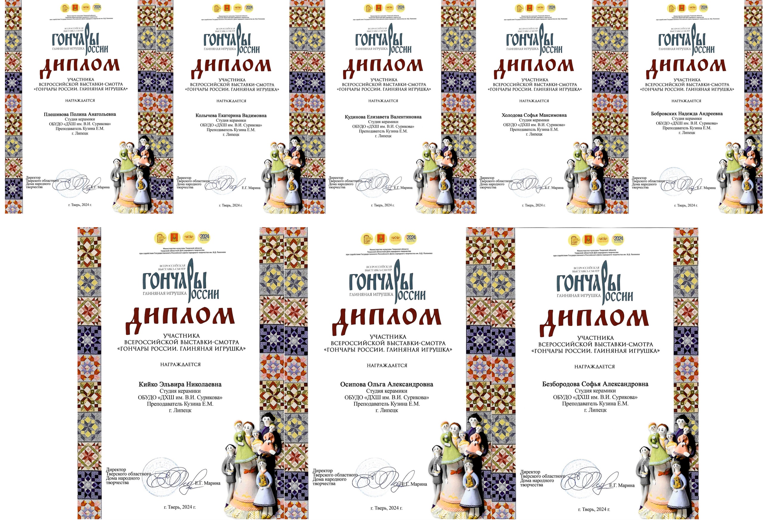 Наши ученики стали участниками Всероссийской выставки- смотра «Гончары России. Глиняная игрушка». Выставка направлена на развитие и популяризацию достижений современных российских мастеров глиняной игрушки и художественной керамики.