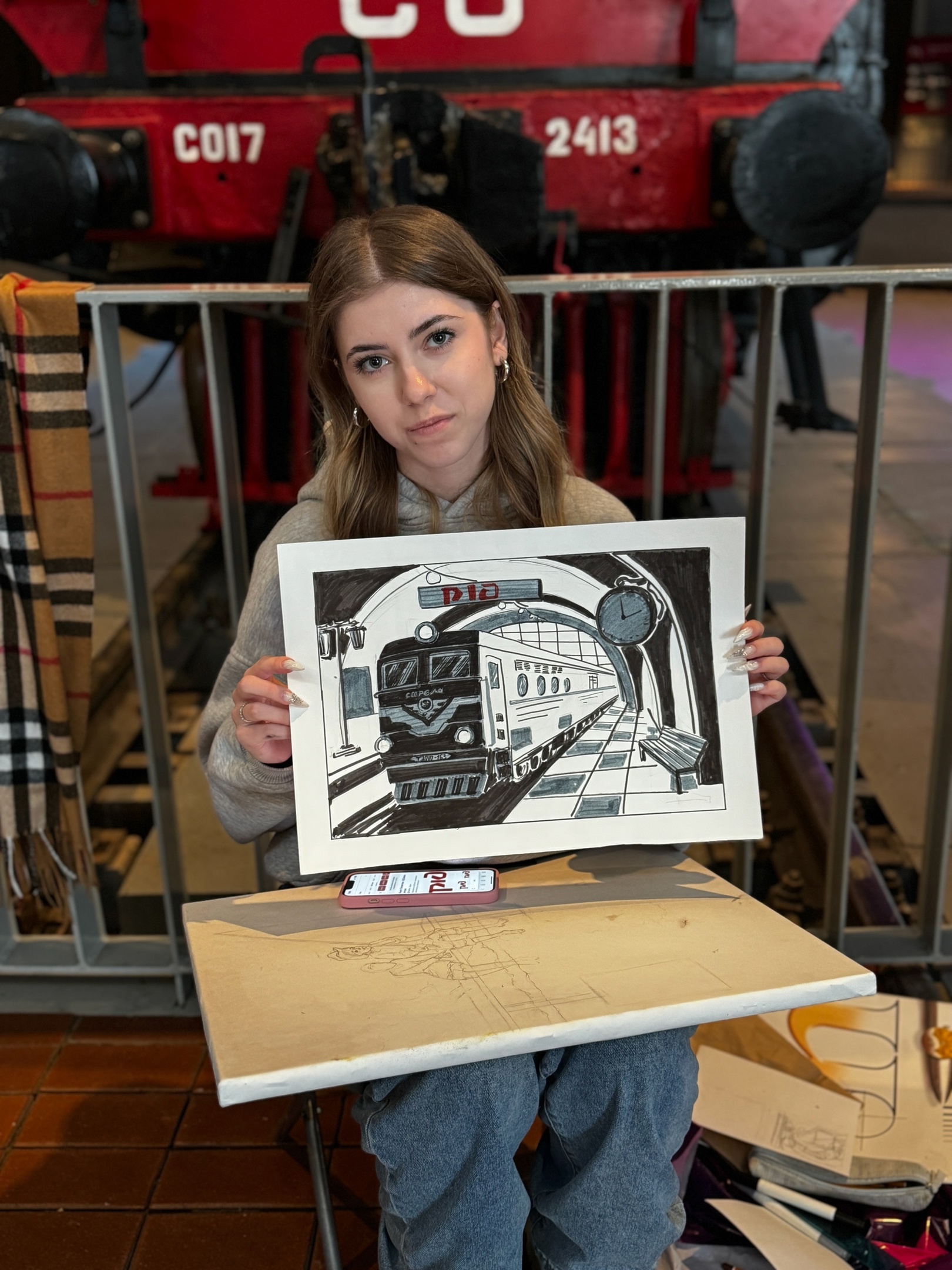 Последнее четвертое конкурсное задание Международного конкурса «Медный всадник» в Санкт-Петербурге. Задание для младшей группы  — с логотипом РЖД разработать коробку конфет или набор елочных Шаров, или набор матрешек, или обед. Для взрослых —  придумать условную композицию в чб варианте на темы : вокзалы Санкт-Петербурга или путешествие с использованием наглядных зарисовок тепловозов железнодорожного музея.