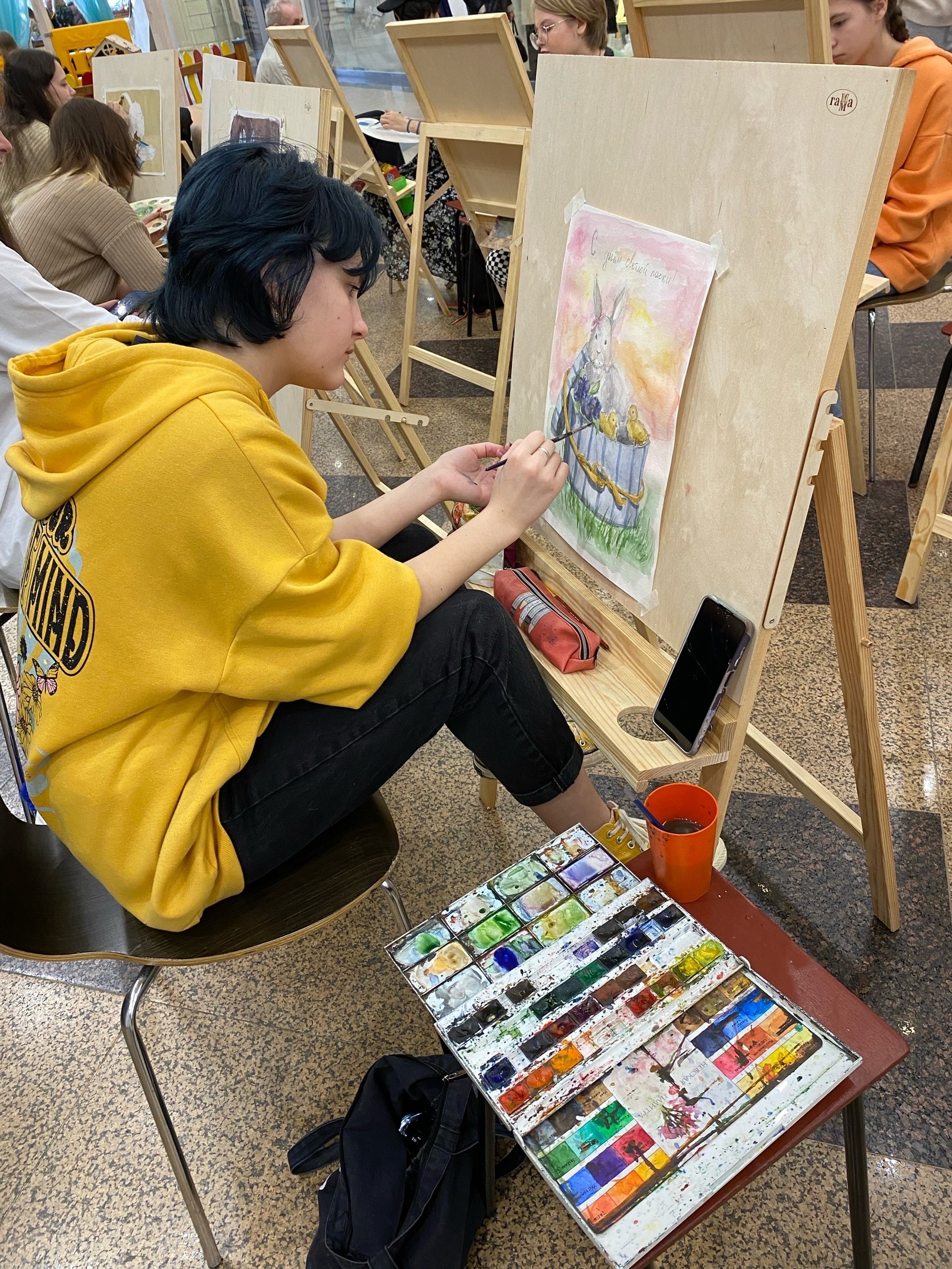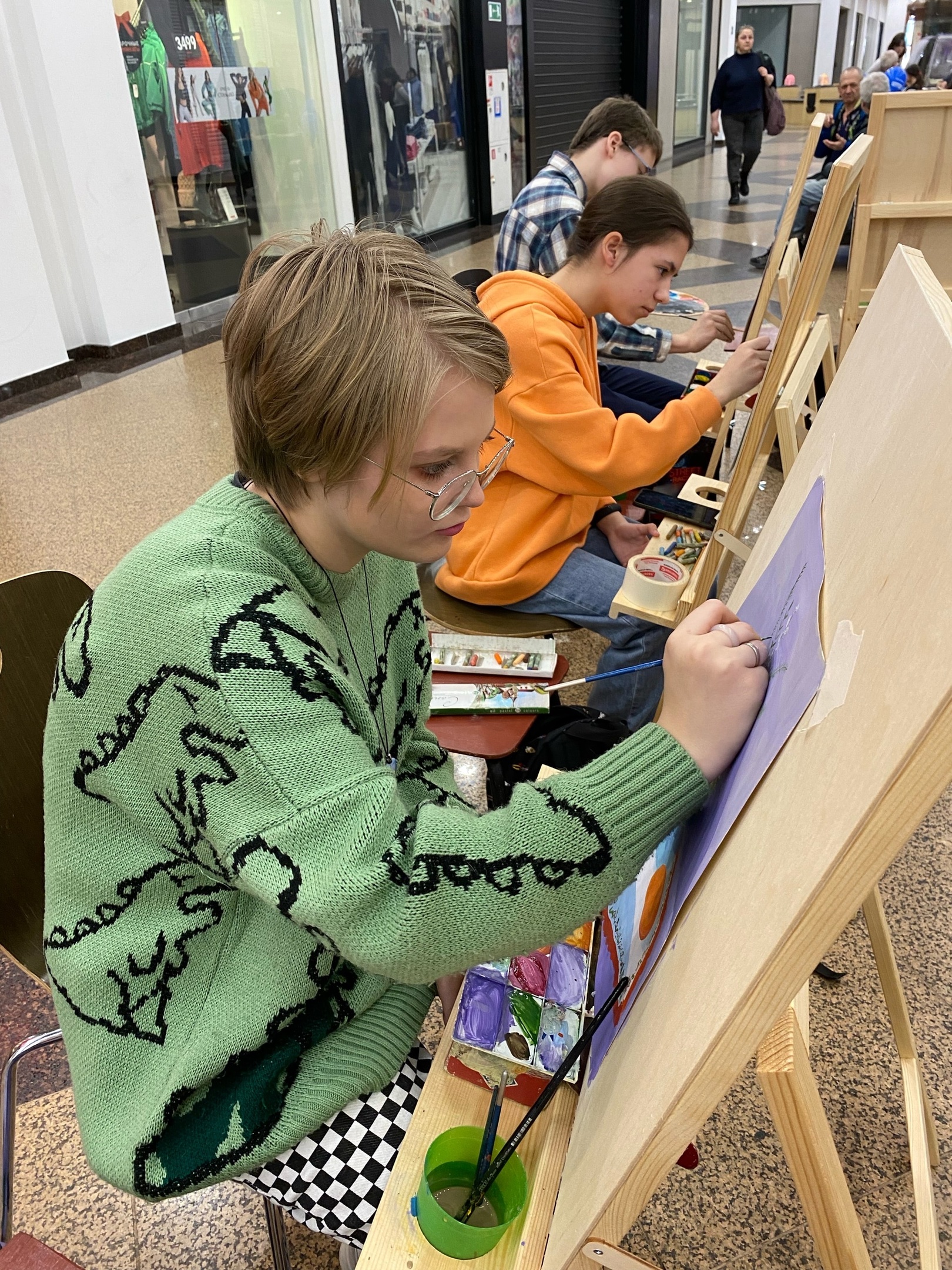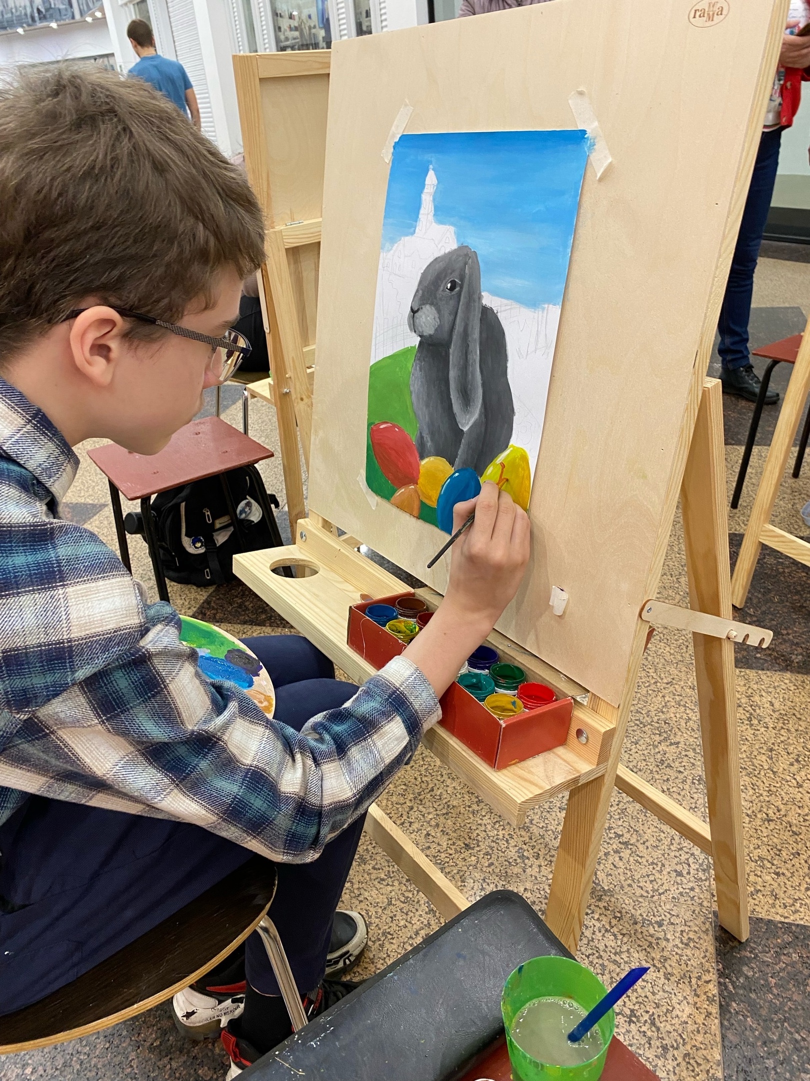 2 апреля 2023 года в ТЦ «Европа» на Советской мы рисовали картины на пасхальную тематику. Вербы и куличи «оживали» на рисунках детей.