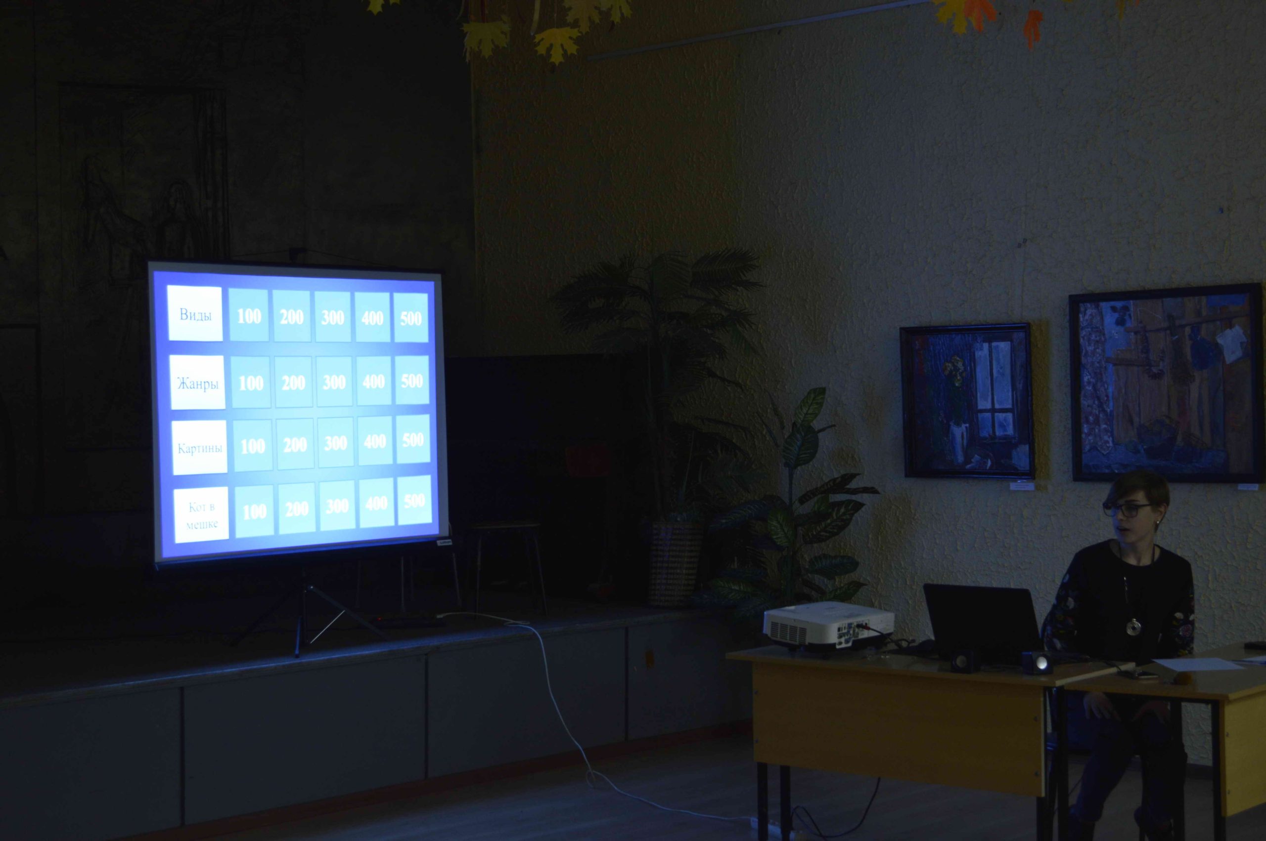 После встречи заместитель директора по УВР ДХШ №2 им. В.И. Сурикова Дорина Инна Владимировна провела с учащимися и гостями встречи викторину по видам и жанрам изобразительного искусства. Правильно ответившим участникам викторины достался приз – портрет художника В.И. Сурикова.