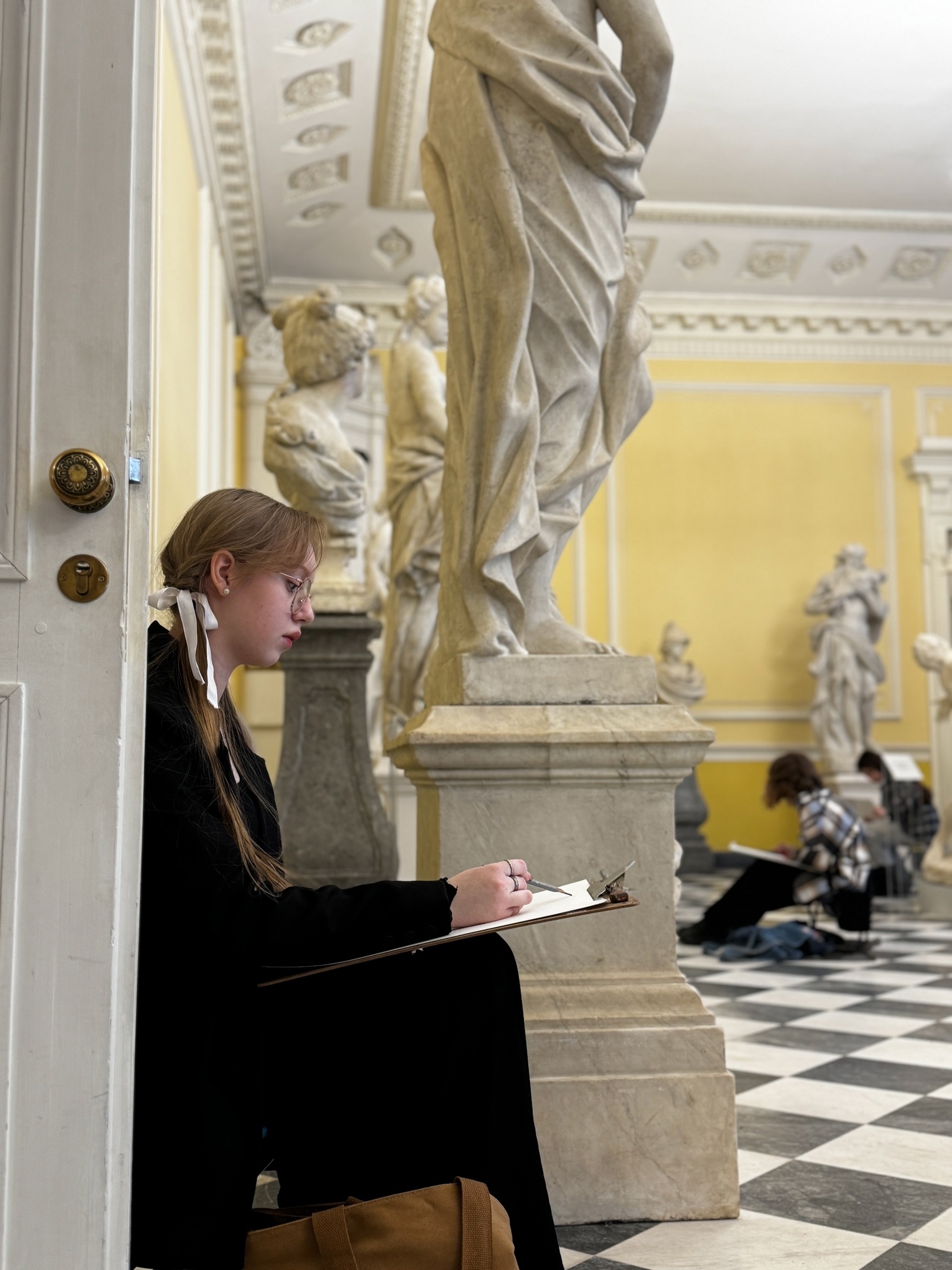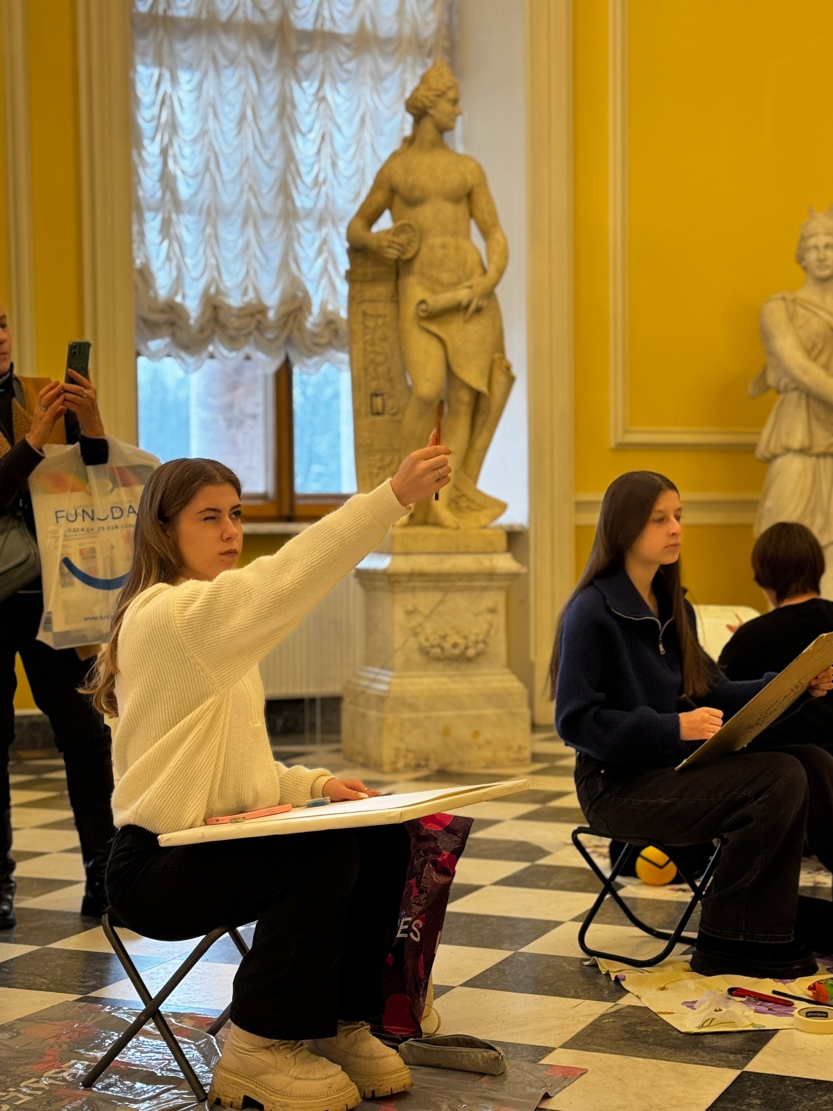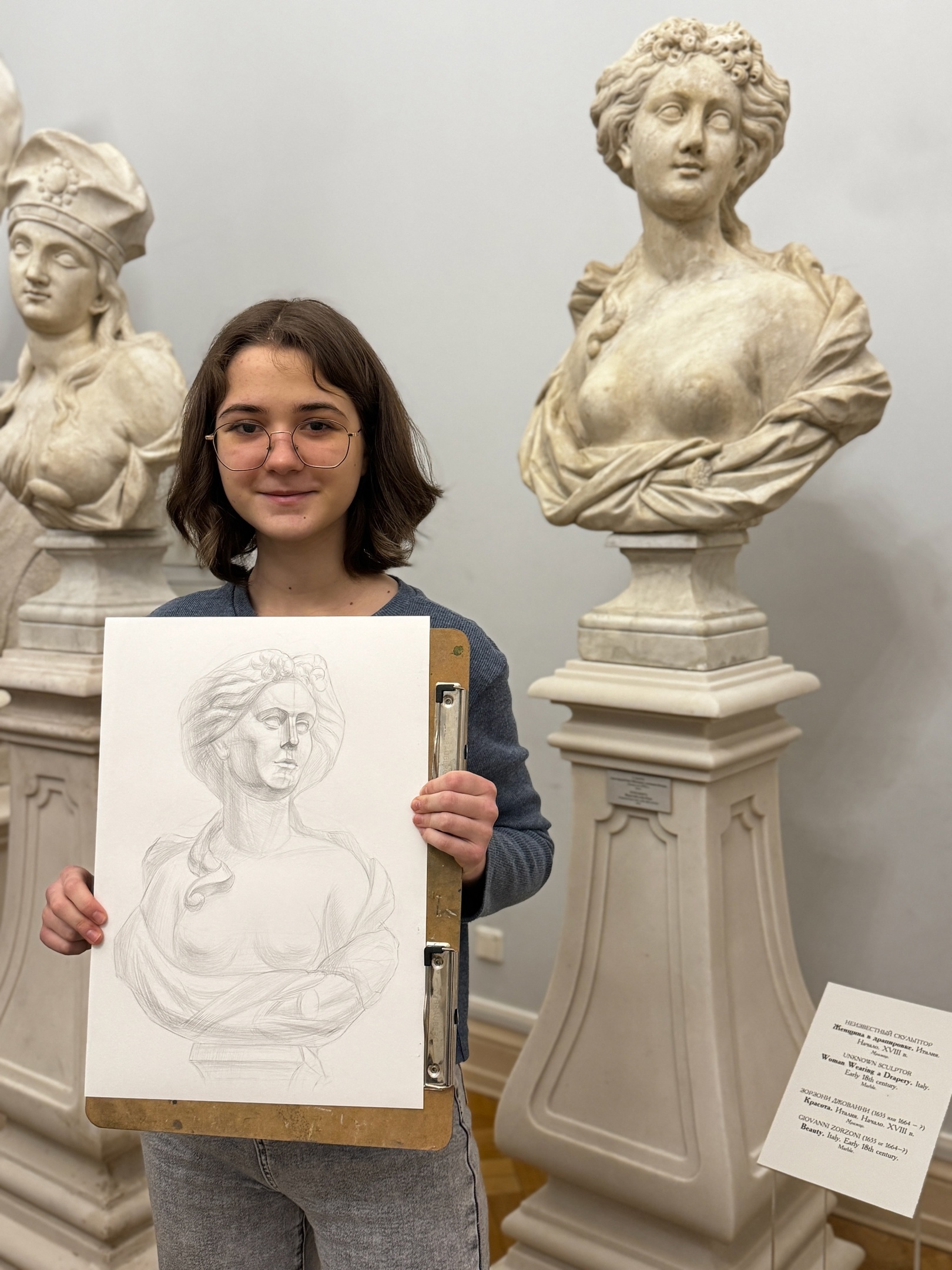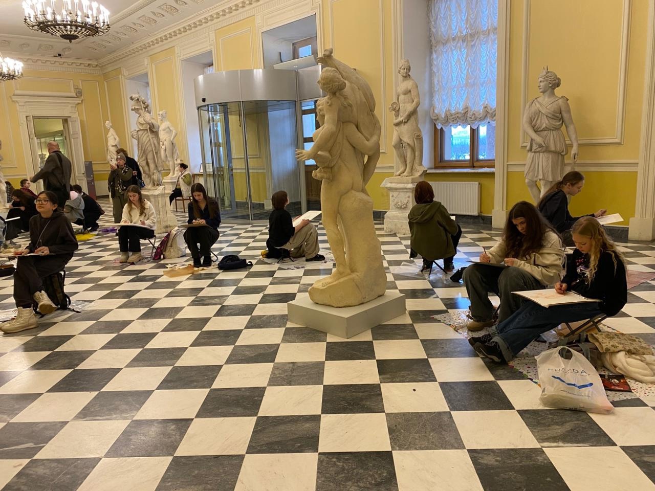 Второй конкурсный день нашей Липецкой команды на Международном конкурсе «Медный всадник» в Санкт-Петербурге — 4х часовая зарисовка парковой скульптуры в залах Михайловского (инженерного) замка.