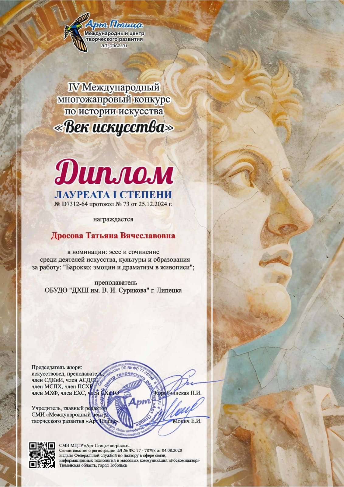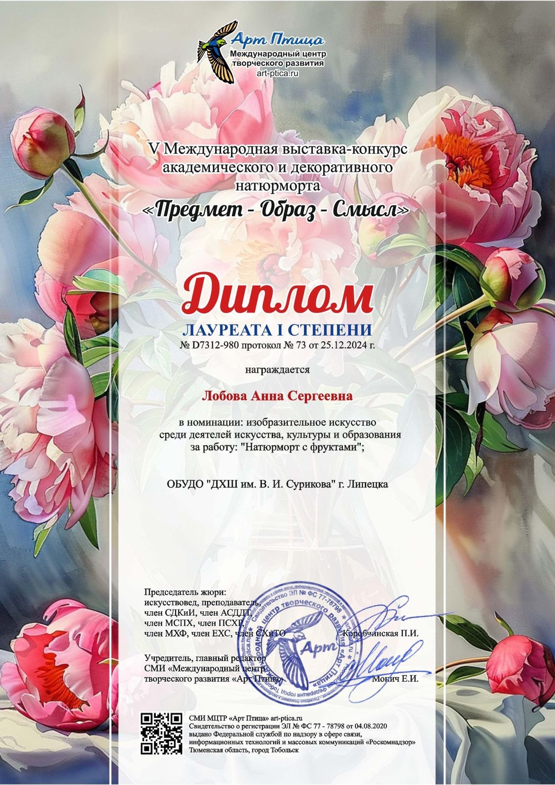 10 января 2025 Поздравляем победителей международного конкурса Поздравляем наших преподавателей Кошеляеву И.С., Лобову А.С. И Дросову Т.В. с победой в международном многожанровом конкурсе.