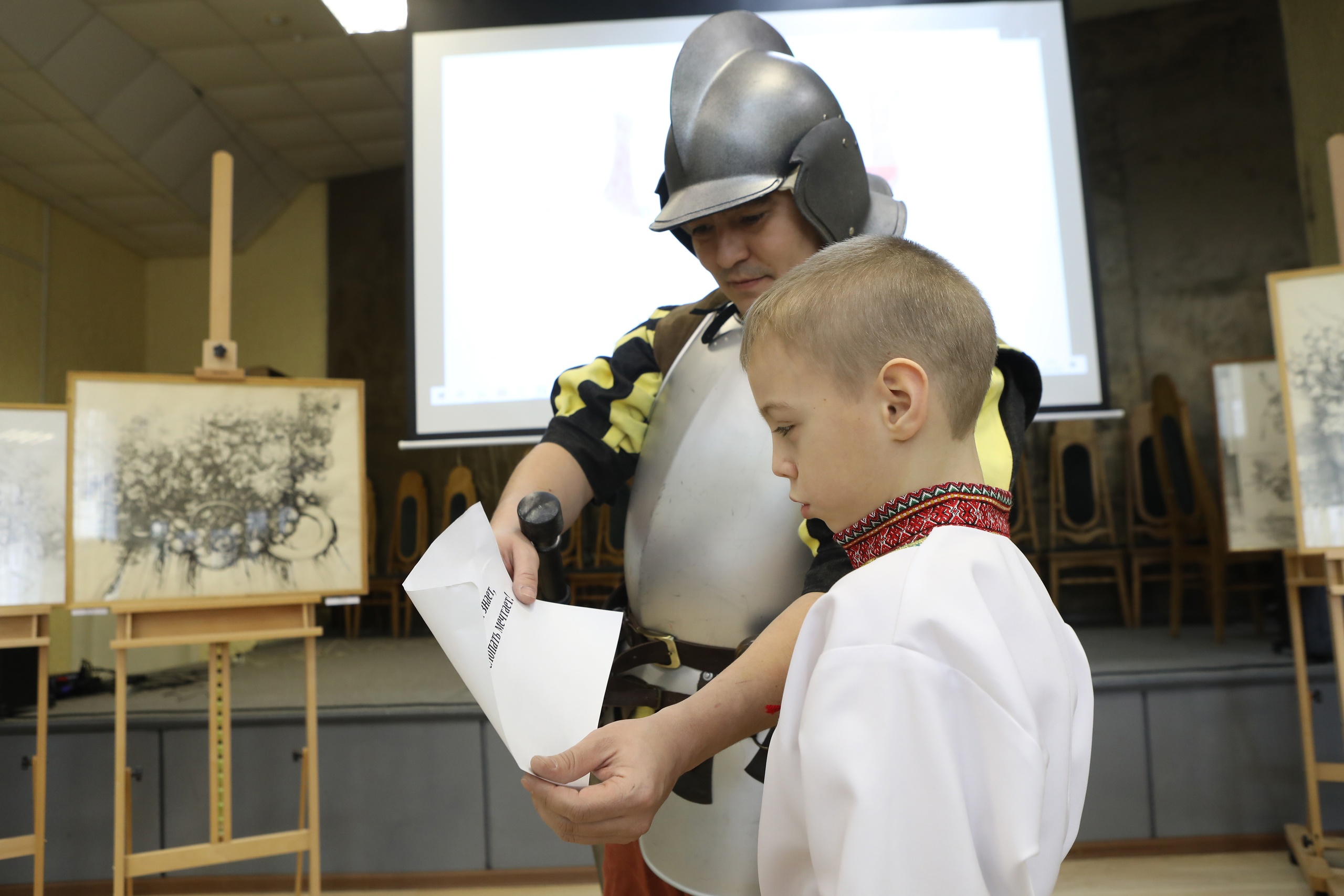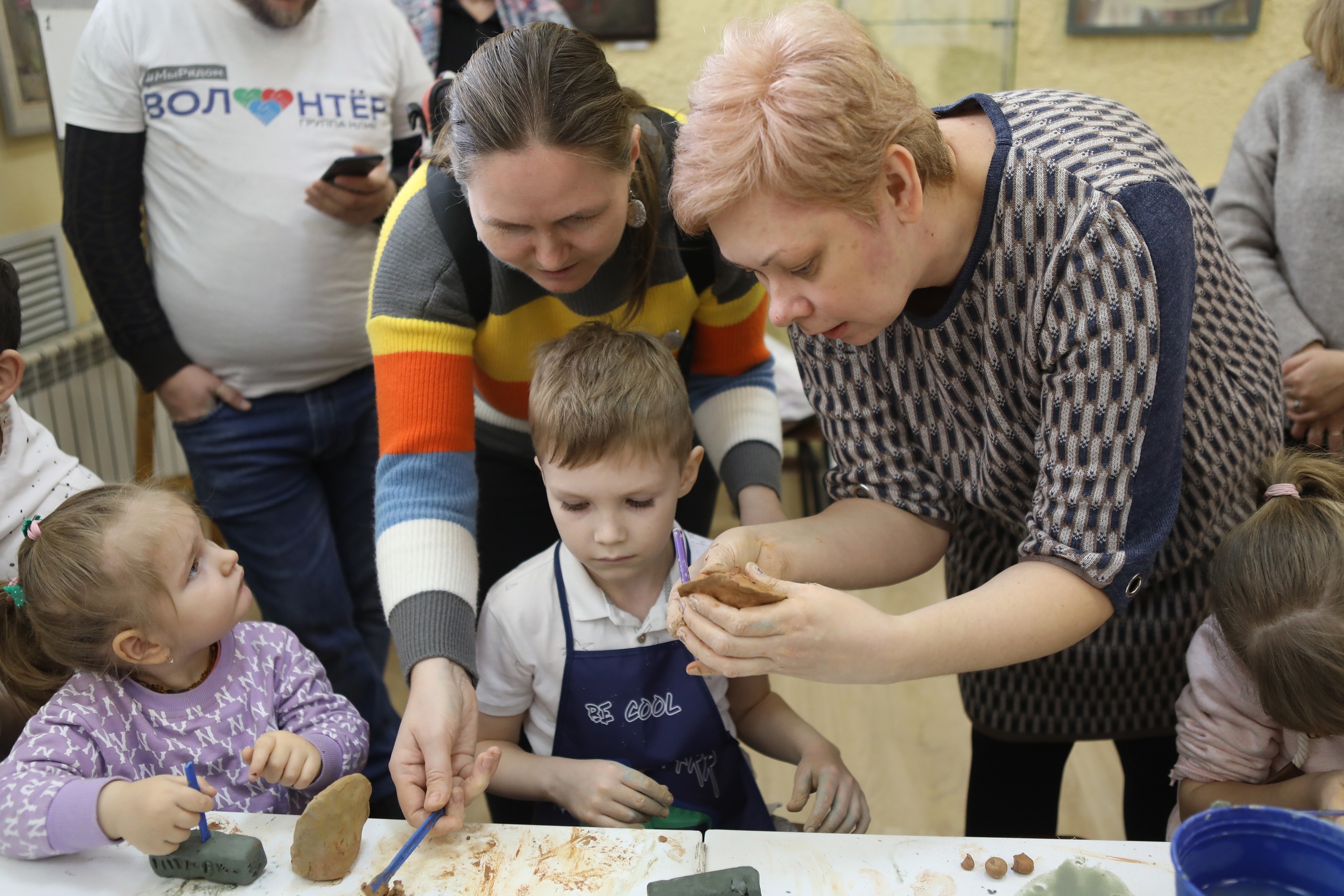 Церемония награждения прошла в выставочном зале. Директор школы Кошеляева Ирина Семёновна одной из победительниц конкурса рисунков вручила сертификат, дающий право бесплатного посещения нескольких занятий по образовательной программе «Ступени творчества». Прекрасным завершением мероприятия стал мастер-класс по глине от преподавателей Монтай Регины Эдуардовны и Кузиной Елены Михайловны.
