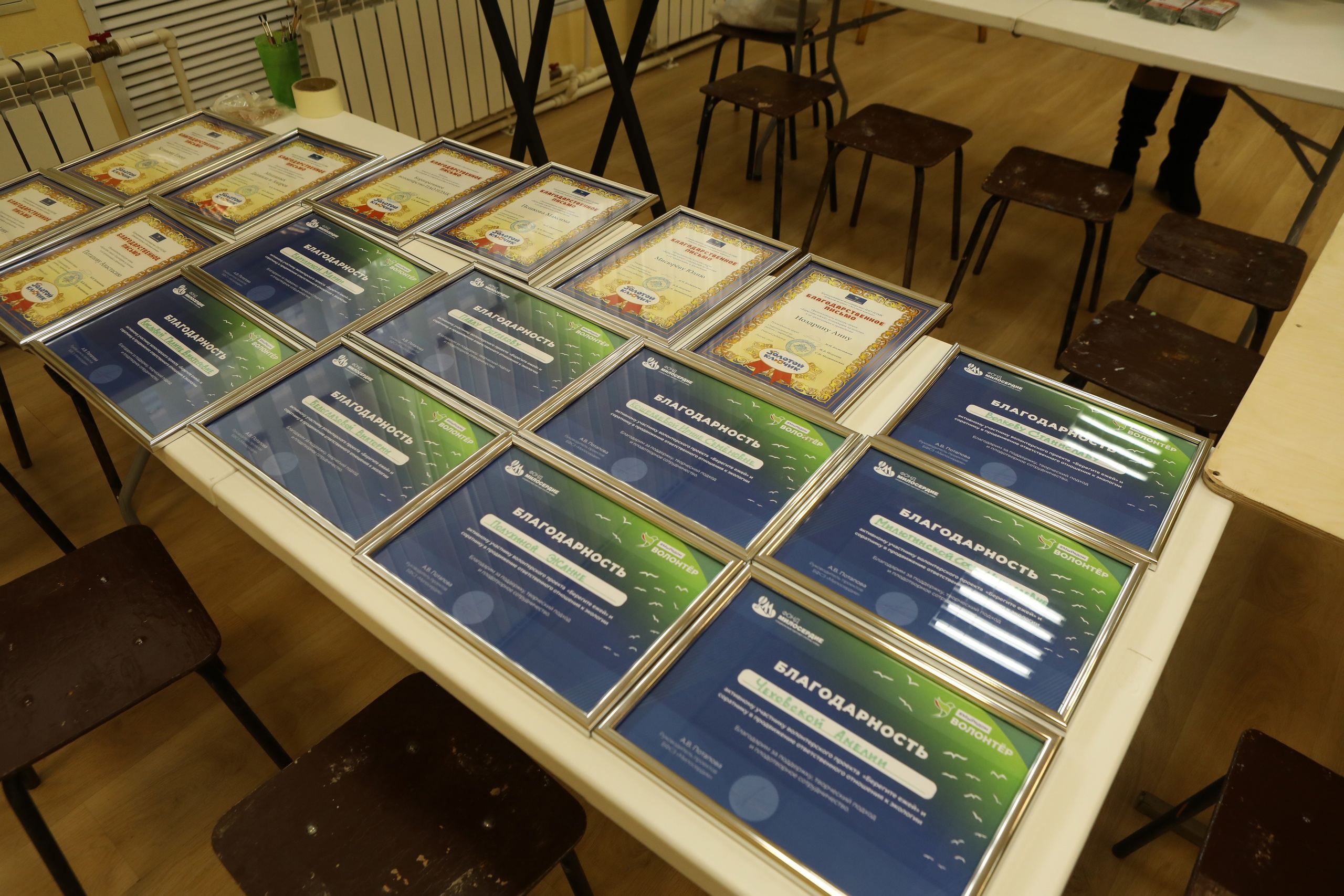 На фото представлены работы ежей, выполненные мальчиком — Даней Мишиным и его братом. Даня приехал к нам на инвалидной коляске, вся его семья была рядом. Даня был в числе победителей акции в защиту ежей.
