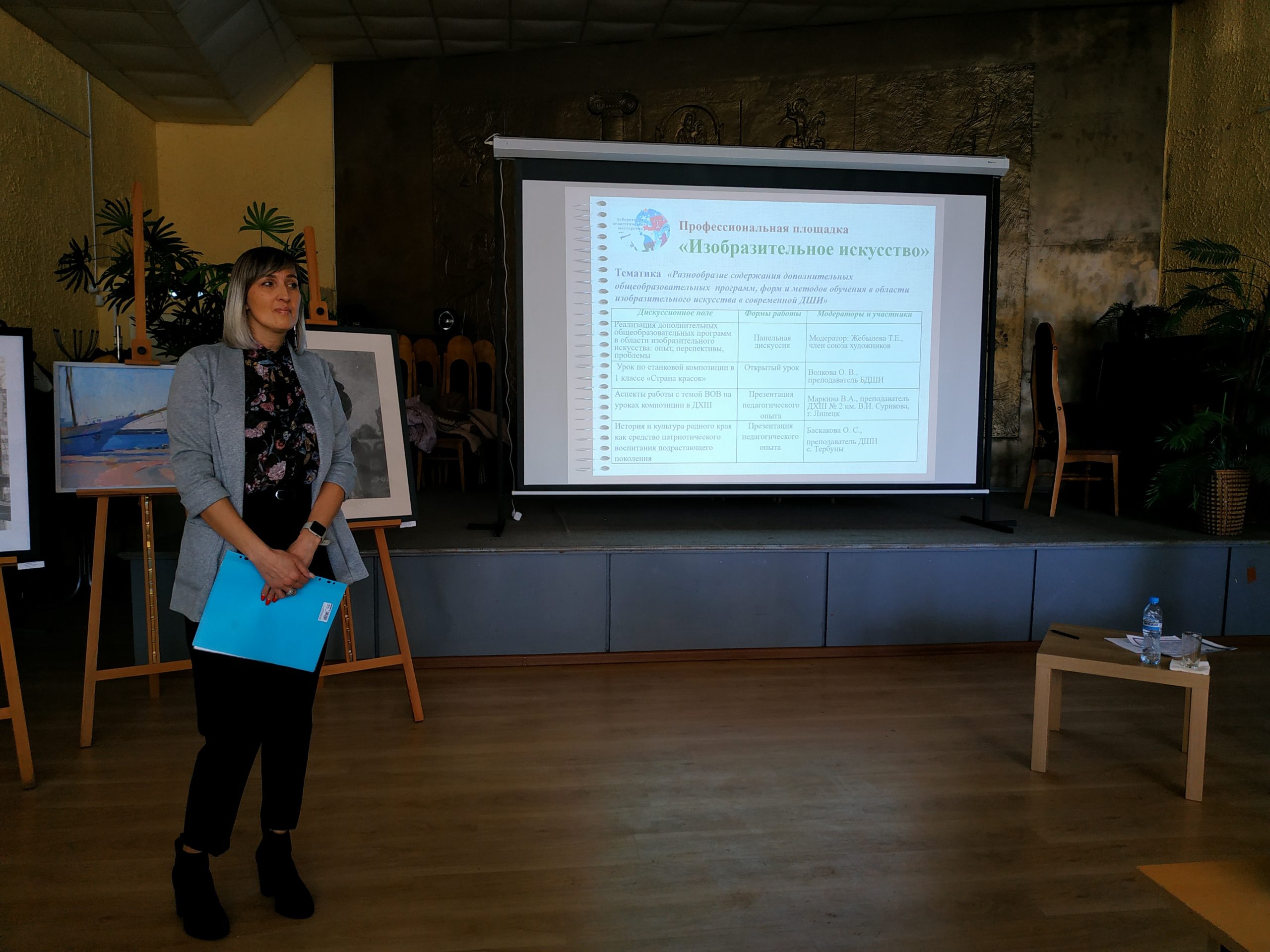 В работе площадки приняли участие: Жебылева Т.Е., член союза художников, модератор; Стеганцева И.П., директор ГОБУ ДПО «Учебно-методический центр по образованию и повышению квалификации специалистов культуры и искусства», Пакина Татьяна Анатольевна, старший методист ГОБУ ДПО «Учебно-методический центр по образованию и повышению квалификации специалистов культуры и искусства».
