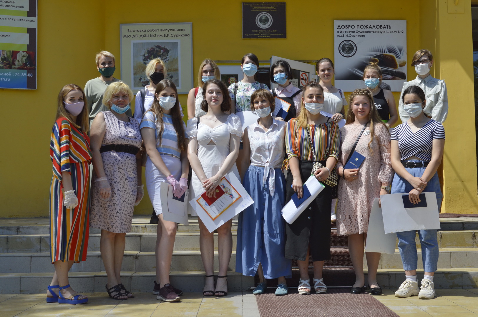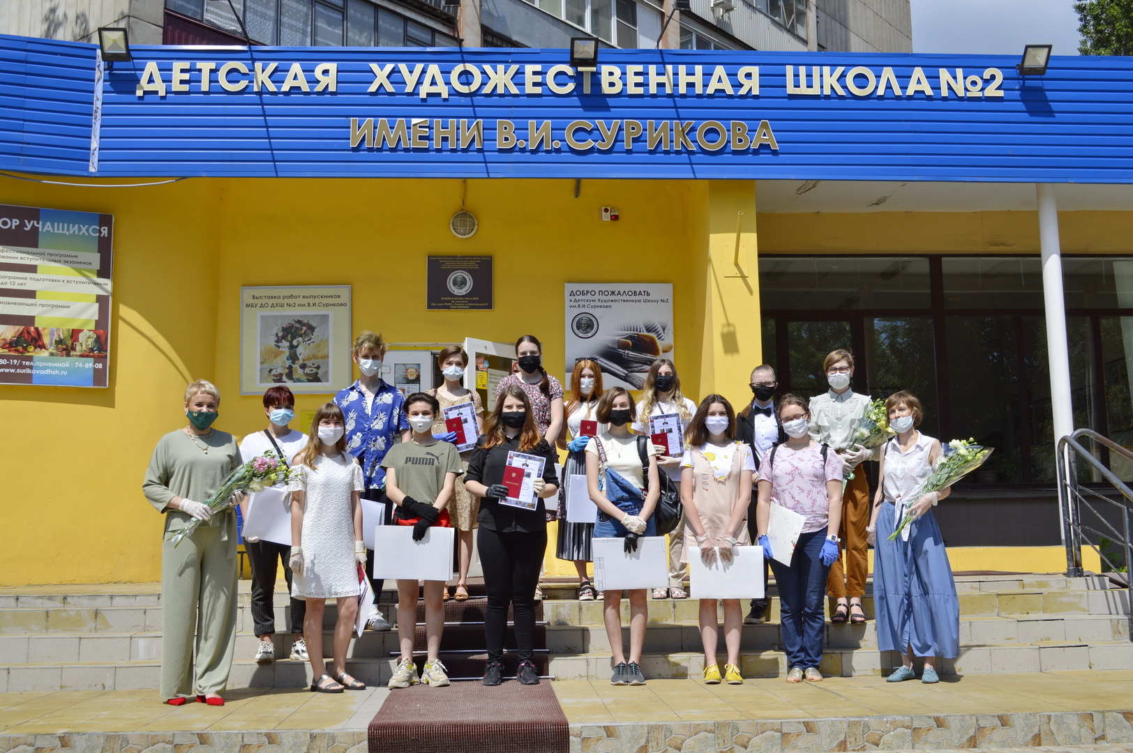 19 июня 2020 года в Детской художественной школе №2 им. В.И. Сурикова состоялось торжественное вручение свидетельств об окончании обучения по дополнительной предпрофессиональной общеобразовательной программе в области изобразительного искусства «Живопись» художественной направленности, а также по дополнительной общеразвивающей программе художественной направленности «Академическое мастерство» (6 класс) . В этом году выпустилось 65 человек из них 55 человек 5 класса по программе «Живопись». Родителям выпускников были вручены благодарственные письма за отличное воспитание подрастающего поколения.