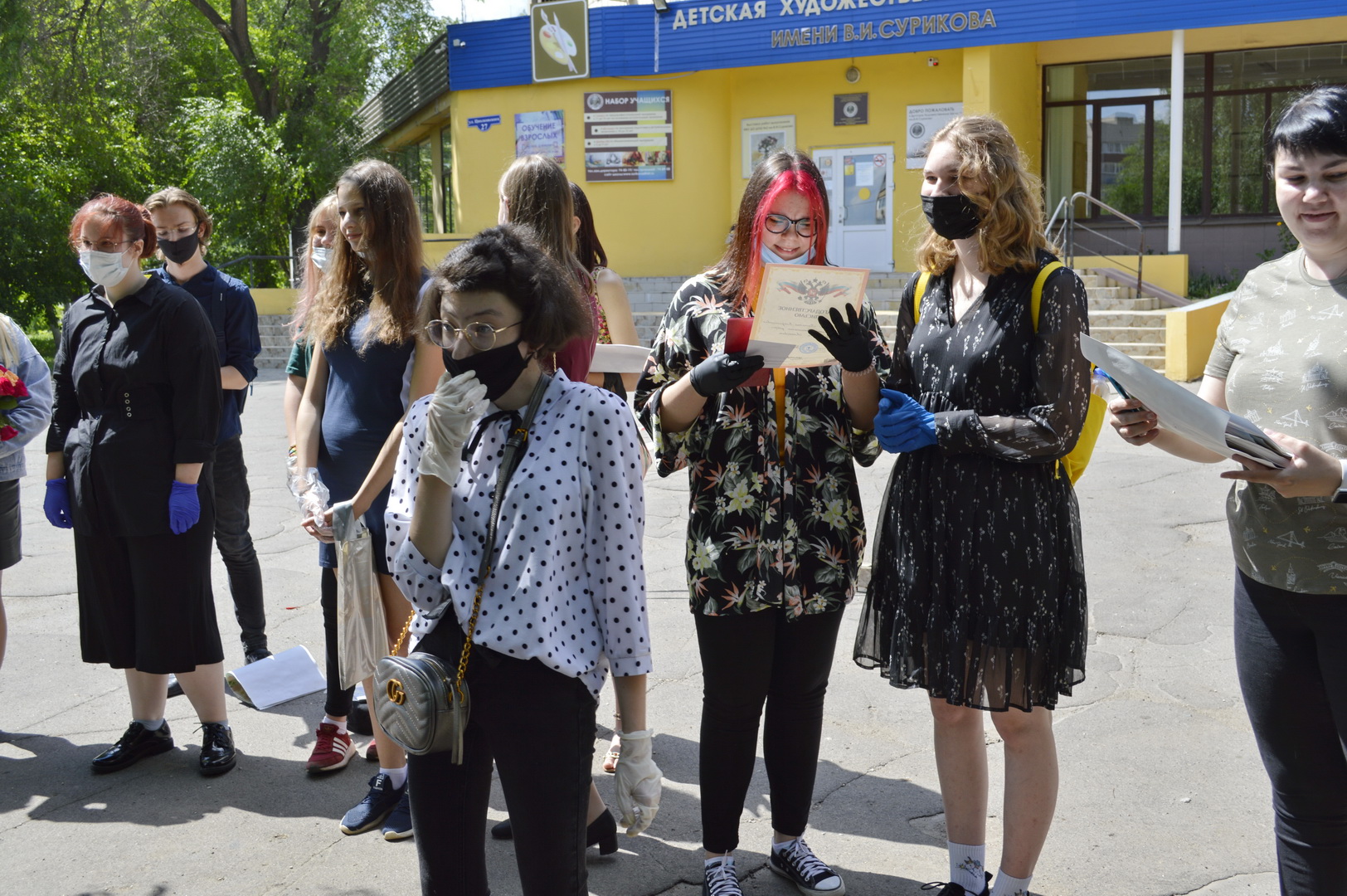 Несмотря на действующие ограничения в правилах проведения мероприятий, вручение свидетельств прошло в атмосфере, наполненной цветами, улыбками, небольшой грустью и большим количеством теплых пожеланий от администрации ДХШ №2 им. В.И. Сурикова, в лице директора школы Ирины Семеновны Кошеляевой, а также ведущих педагогов, классных руководителей, самих ребят и их родителей.