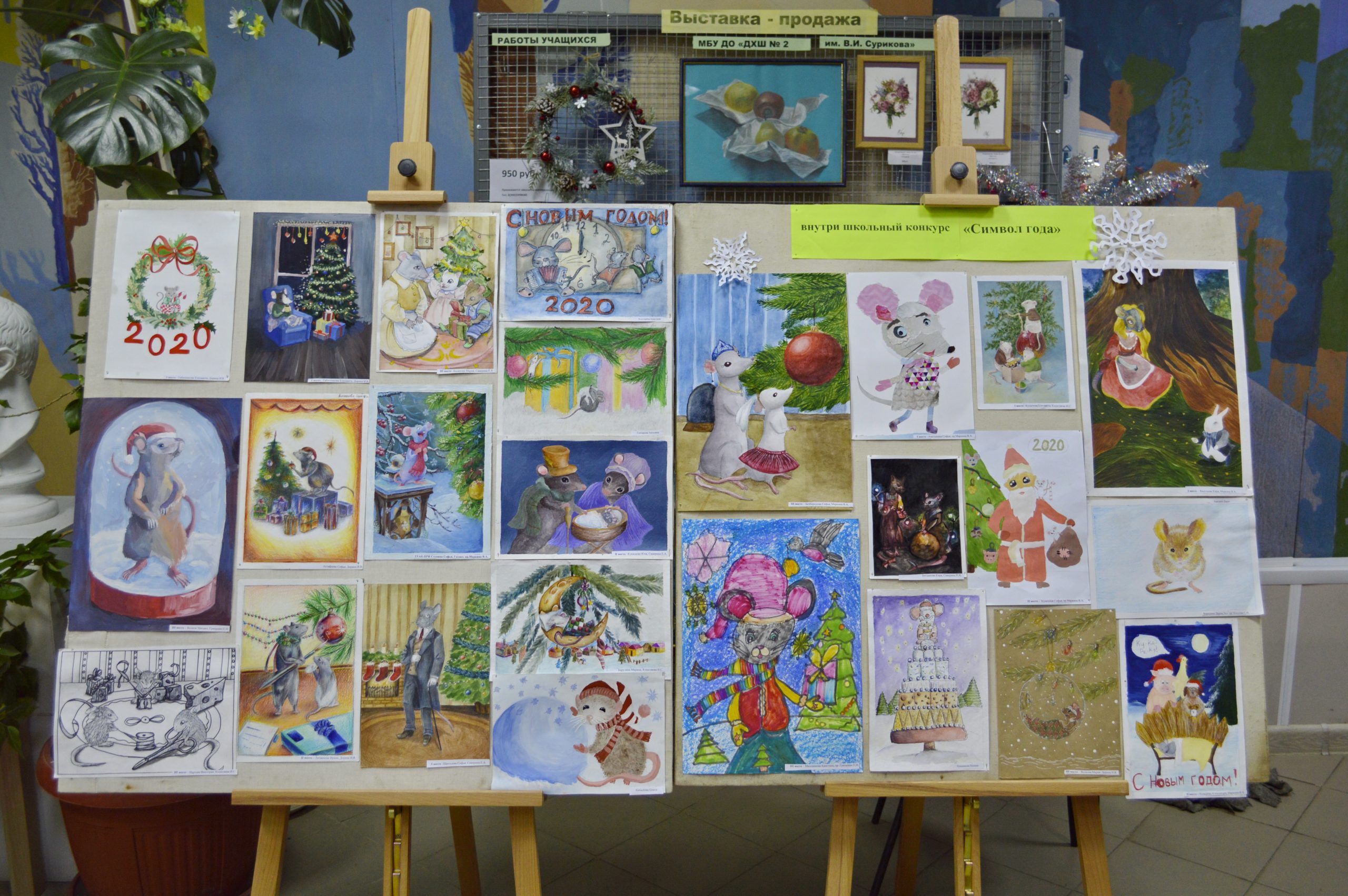 Впервые в Детской художественной школе №2 им. В.И. Сурикова прошел школьный конкурс на лучшую работу, посвященную символу нового 2020 году. Многие обучающиеся с восторгом откликнулись на конкурсное задание. И в конкурсе приняло участие 45 человек. Работы принимались до 19 декабря 2019 года, а 20 декабря состоялось заседание жюри.